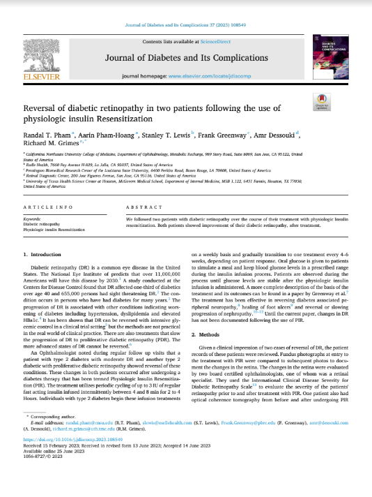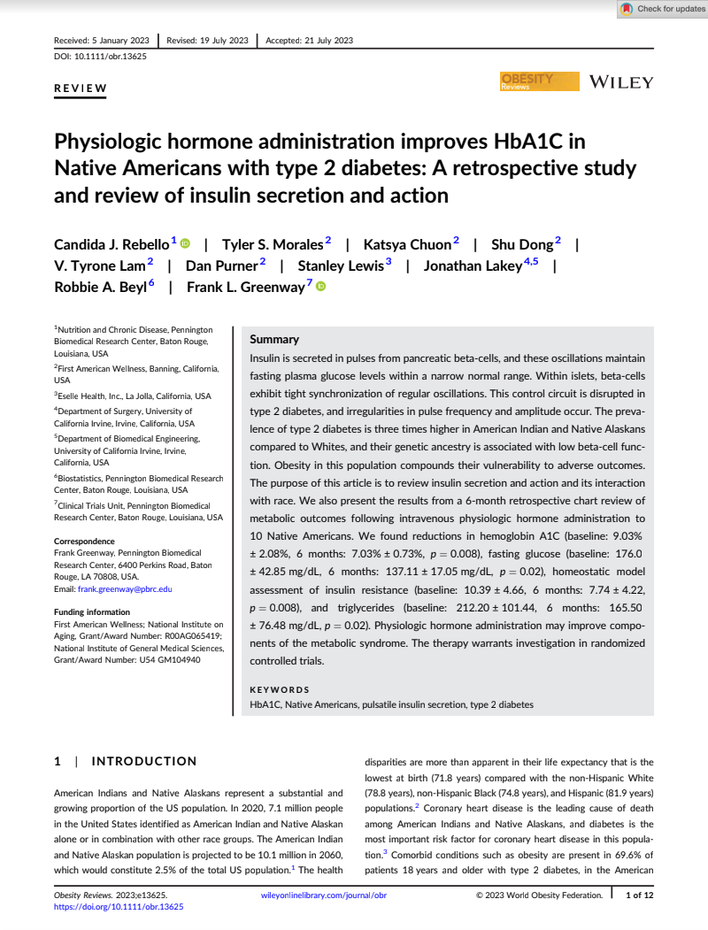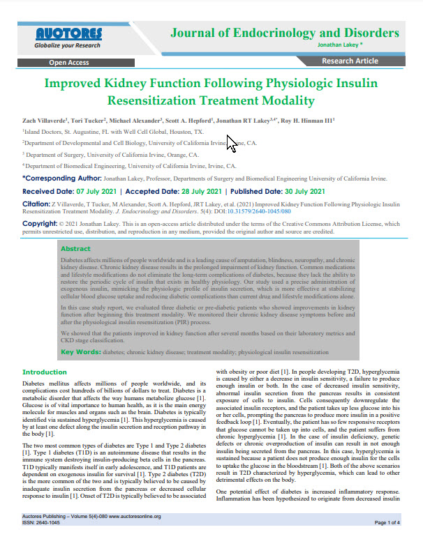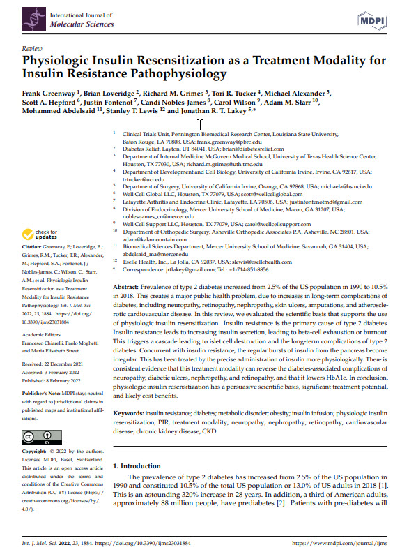 Published Medical Journal ArticlesFor the most current research, visit https://wellcellglobal.com/research/A Receptor Story: Insulin Resistance Pathophysiology and Physiologic Insulin Resensitization’s Role as a Treatment Modality(Click to Download PDF)Physiologic Insulin Resensitization as a Treatment Modality for Insulin Resistance Pathophysiology(Click to Download PDF)Physiologic hormone administration improves HbA1C in Native Americans with type 2 diabetes: A retrospective study and review of insulin secretion and action(Click to Download PDF)Improved HOMA-IR Insulin Sensitivity and Glycemic Control Utilizing Physiologic Insulin Resensitization(Click to Download PDF)Improved Kidney Function Following Physiologic Insulin Resensitization Treatment Modality(Click to Download PDF)Case Series: Reversal of Diabetic Neuropathy Utilizing Physiologic Insulin Resensitization(Click to Download PDF)Case Series: Reversal of Diabetic Retinopathy in two Patients Following the use of Physiologic Insulin Resensitization(Click to Download PDF)Dynamic Diabetes Solutions: Physiologic Insulin Resensitization(Click to Download PDF)